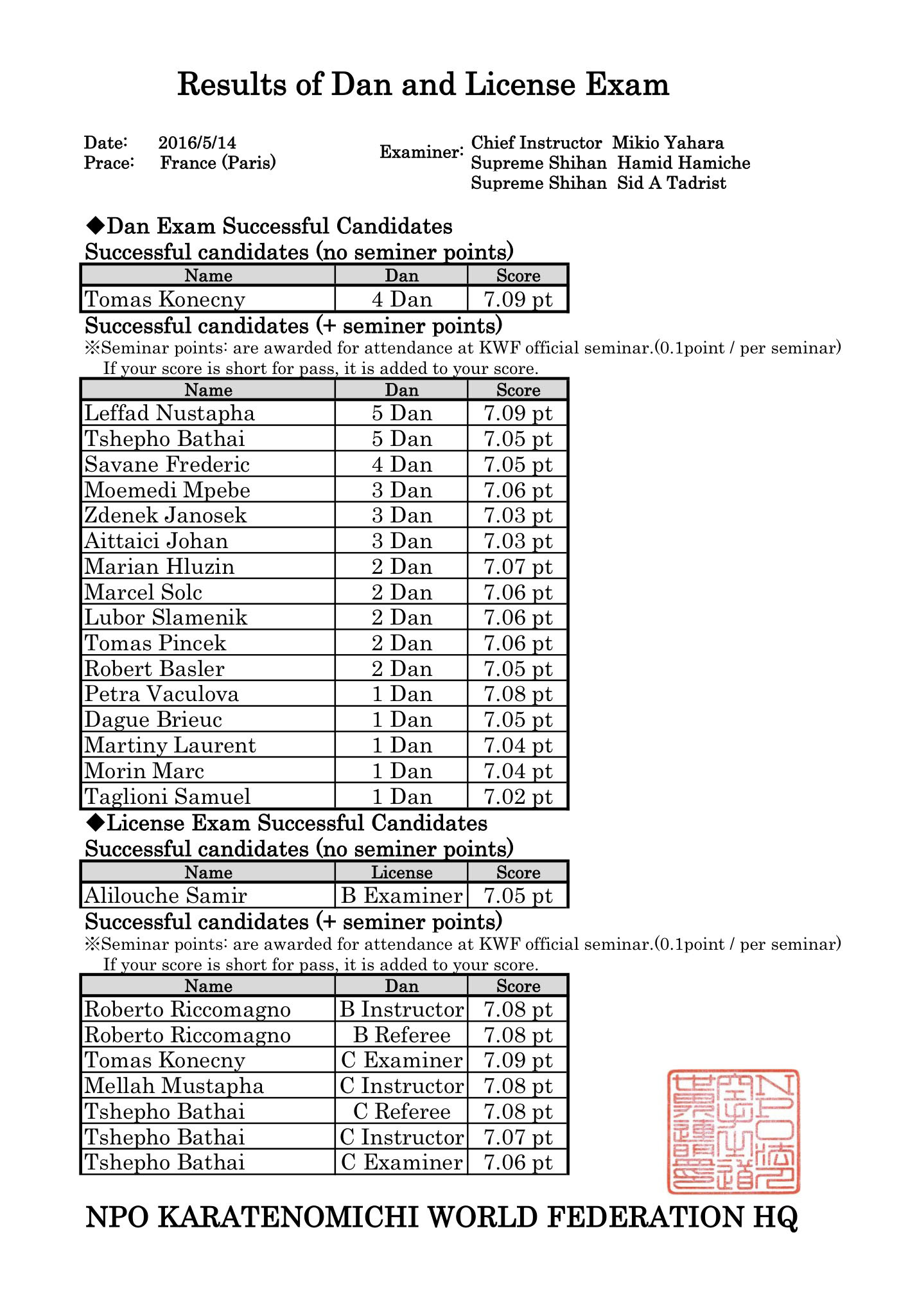 Résultats des examens du 14 mai 2016 – Paris – France Source : KWF HQ Partager : Cliquer pour partager sur X(ouvre dans une nouvelle fenêtre) X Cliquez pour partager sur Facebook(ouvre dans une nouvelle fenêtre) Facebook Cliquez pour partager sur WhatsApp(ouvre dans une nouvelle fenêtre) WhatsApp J’aime chargement… Similaire Les commentaires sont fermés.