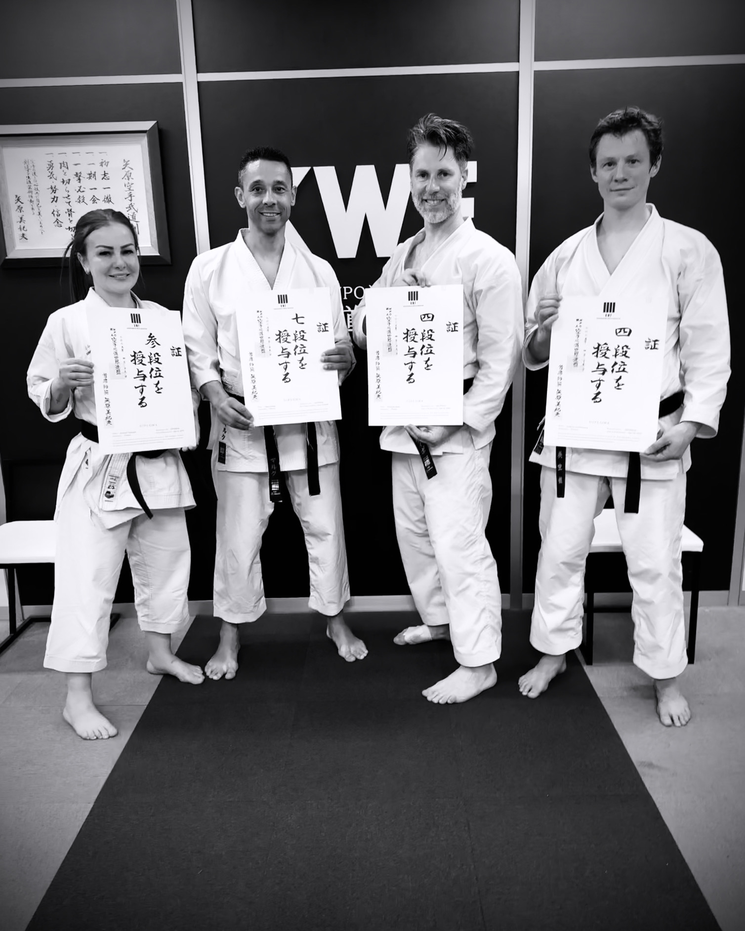 Profitant de cet examen spécialement organisé par Yahara sensei pour leur instructeur, trois membres du Bikukan lui ont brillamment emboîté le pas : Hakima Tezkratt a obtenu son 3e Dan 参段 KWF, Thibault Josse et Ludovic Lecherbourg leur 4e Dan 四段 KWF.